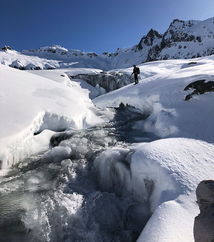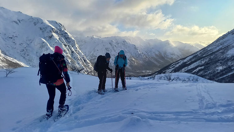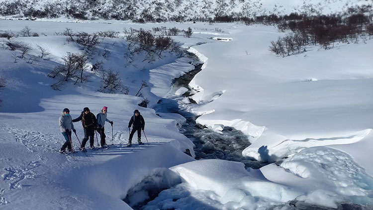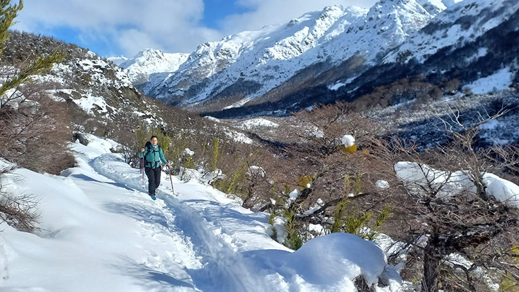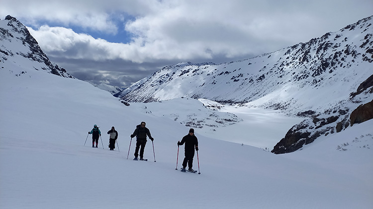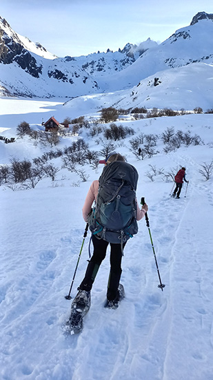 The second day of the journey you will take the opportunity to visit different attractive points in the valley such as the “Laguna de los Témpanos”, the “Schweizer Pass” and if the snow conditions are appropriate, try an ascent to Cerro Cella summit. The proposal is to spend the whole day exploring and taking advantage of the snowshoes to move comfortably through the alpine terrain. In the event that the weather is not entirely favorable, we can take shorter walks in the vicinity of the hut and return to its shelter. Before dinner, it will be time to go out and enjoy the starry sky and complete silence of solitude.