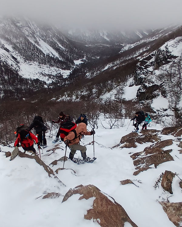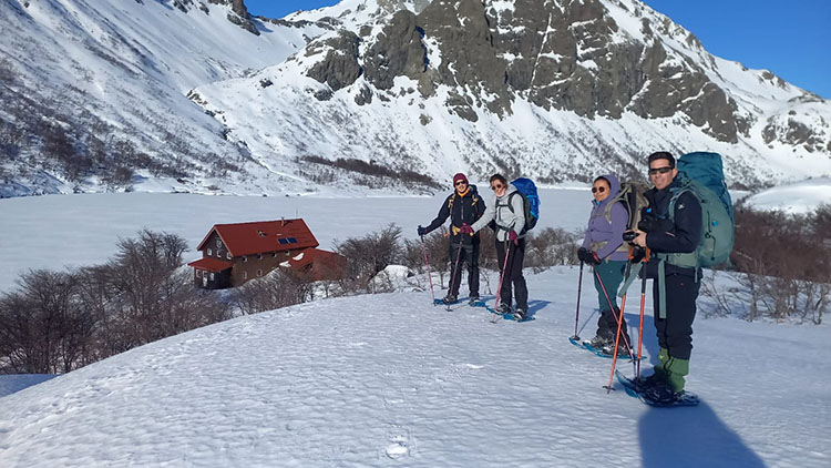 We invite you to live an amazing winter mountain experience in the heart of the Andes Mountains of Patagonia, in a unique environment. On the outskirts of the city of Bariloche, we take advantage of the great accumulation of snow at Arroyo Casa de Piedra Valley to go out into the mountains with snowshoes and reach the San Martín Mountain Hut (known as Jakob). The hut is located by an alpine lagoon called “Laguna Jakob” at 1,564 meters above sea level, which during the winter remains frozen and covered with snow. Around the vicinity of the hut we can explore different panoramic points that offer incredible views of the surrounding valleys and rocky peaks. Without a doubt, an unmissable winter trek with snowshoes!