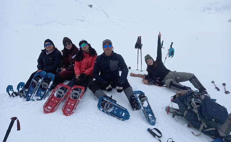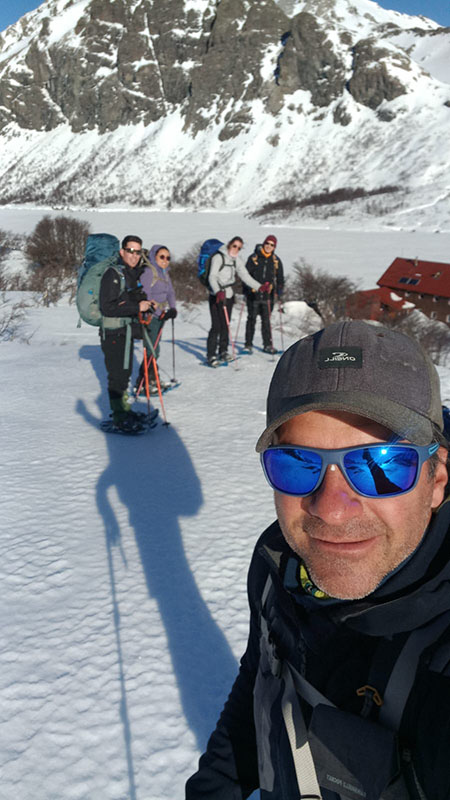 The journey begins, the night before your traverse, in the city of Bariloche where you will meet your Mountain Guide to chat about the experience and to check the personal equipment for each one of you. On day one, you drive to a location calle “El Tambo Báez”, where the path to the hut begins. The first trekking section will surely be without snowshoes due to the low elevation. As we enter the valley and the Andes Range, we will begin to cross snowy areas and after a couple of hours you will put on your snowshoes and climb the switch backs that ascend towards the alpine valley where the Jakob lagoon is located. After approximately 7 hours of hiking, you will arrive at the San Martín Mountain Hut where you will spend the night. It is time to relax and enjoy the incredible views and snowy peaks. The hut is super comfortable and heated and the staff will provide a delicious dinner accompanied by the special mountain atmosphere.